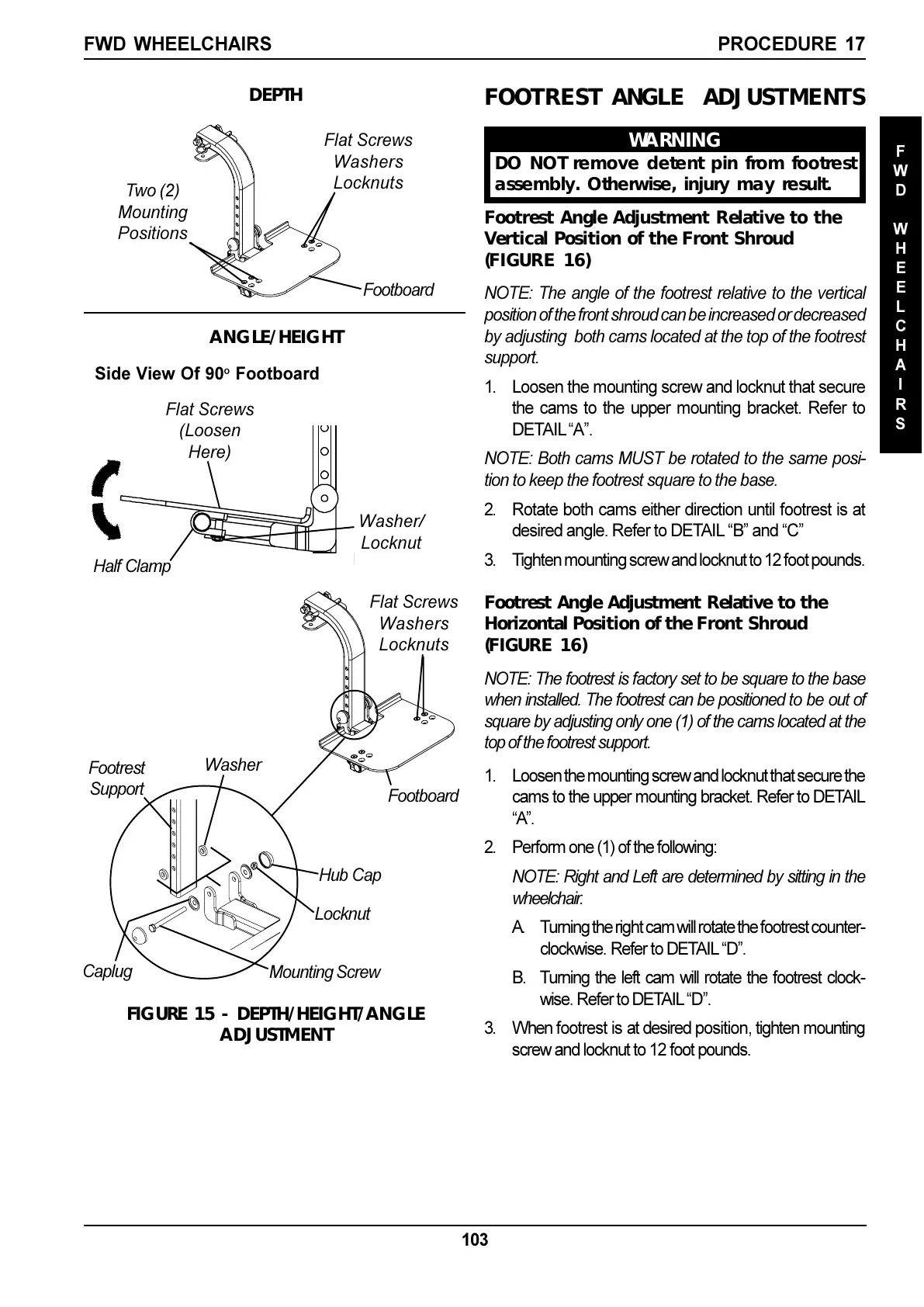 FOOTREST ANGLE ADJUSTMENTS