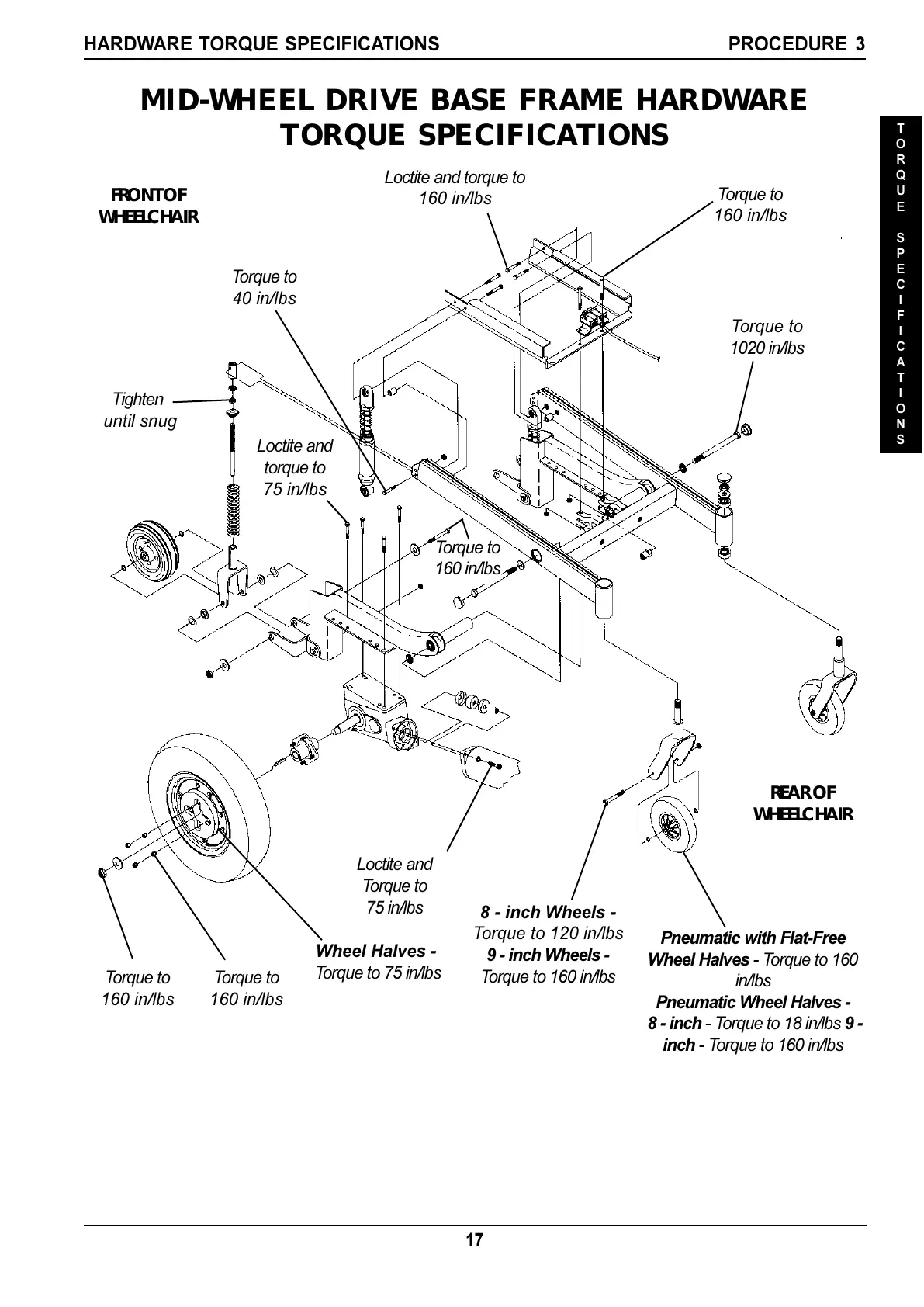 Invacare Storm Torque SP - MID-Wheel Drive Base Frame Hardware Torque Specifications
