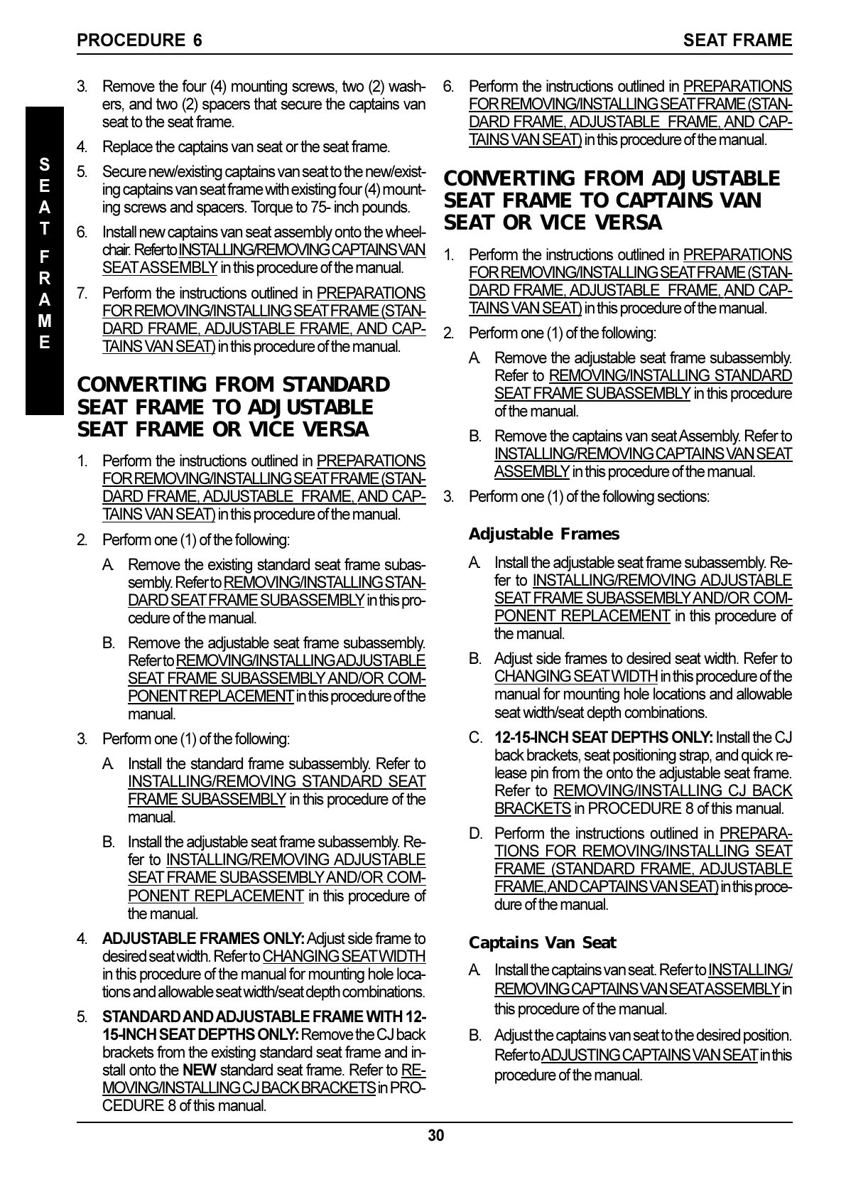 FRAME, AND CAPTAINS VAN SEAT) in this proce-