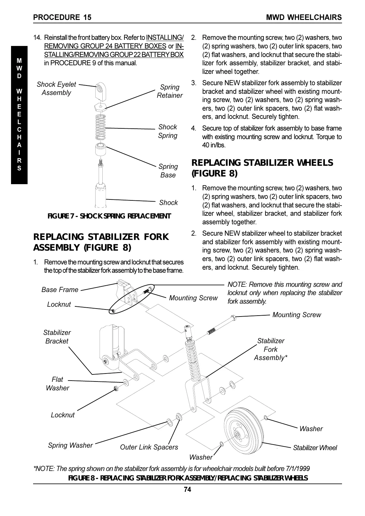 *NOTE: The spring shown on the stabilizer fork assembly is for wheelchair models built before 7/1/1999