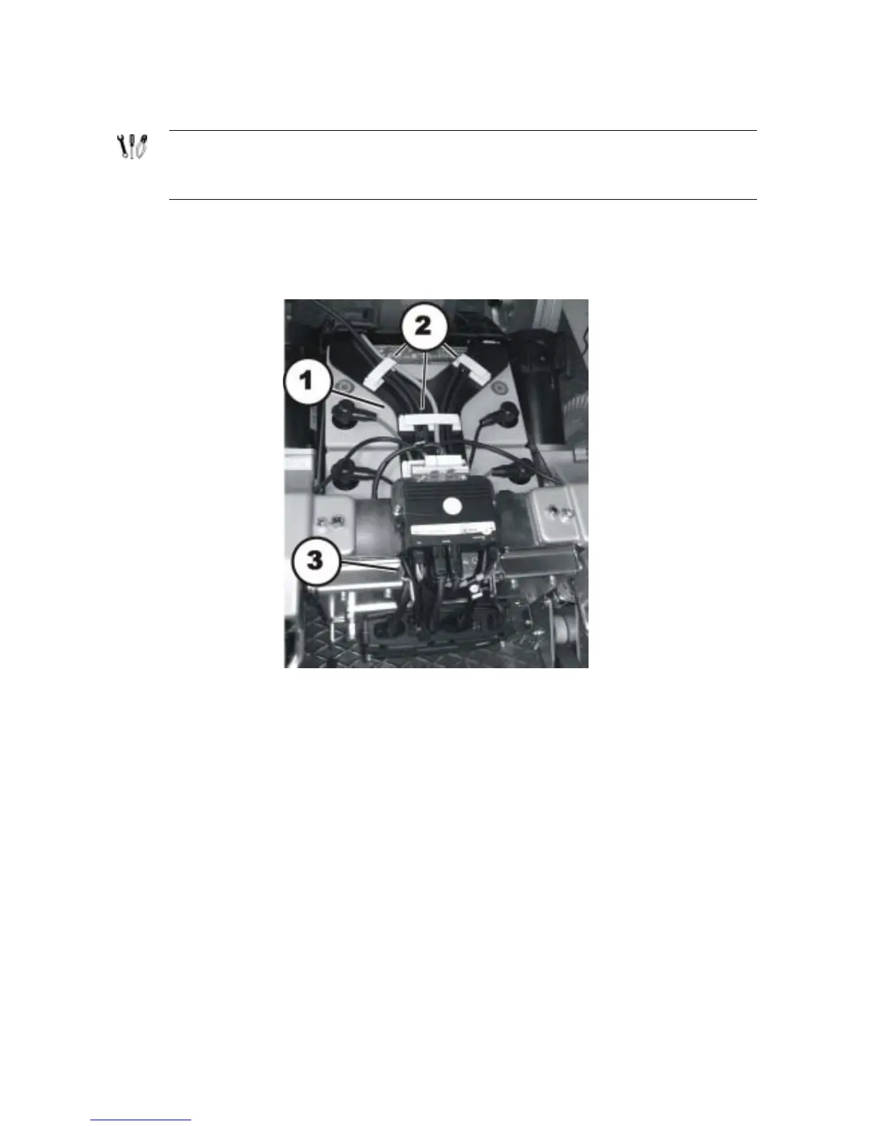 • Fasten the cables with the cable clamps (2). The cable clamps on the front side of the battery