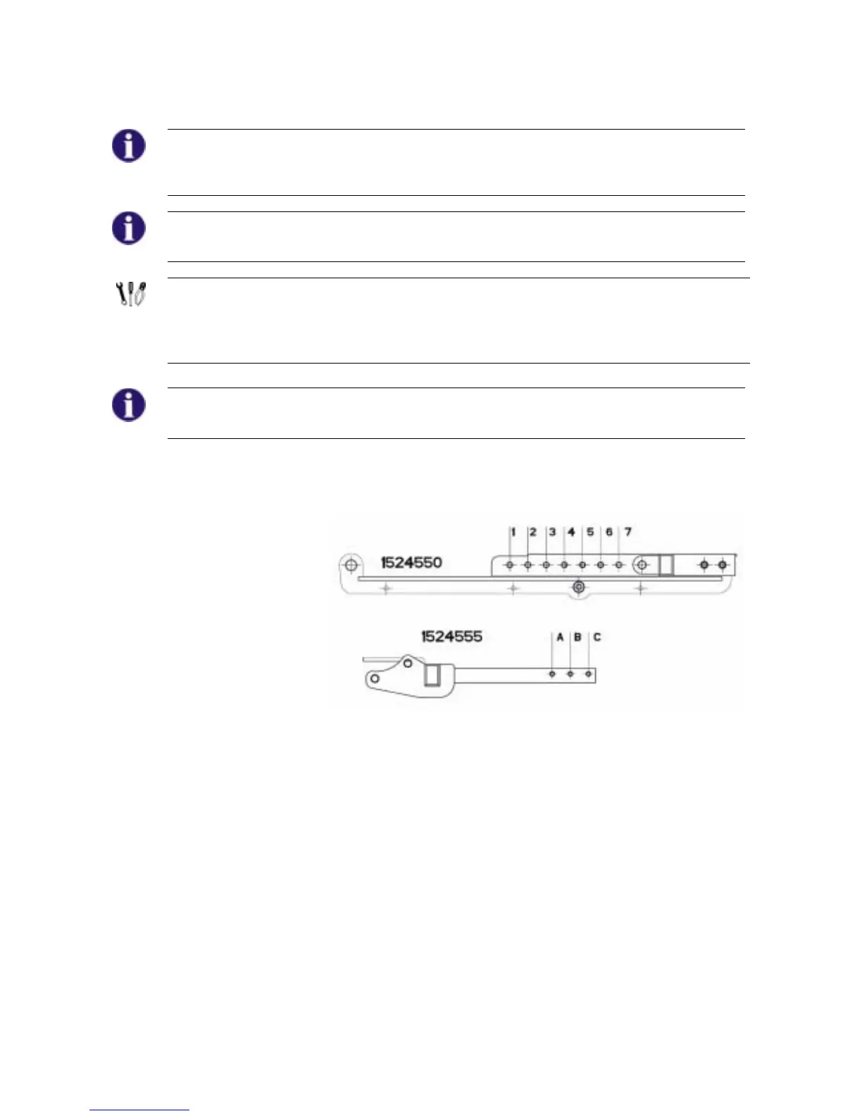 • Use the following illustration and the table to determine which holes must be used for the