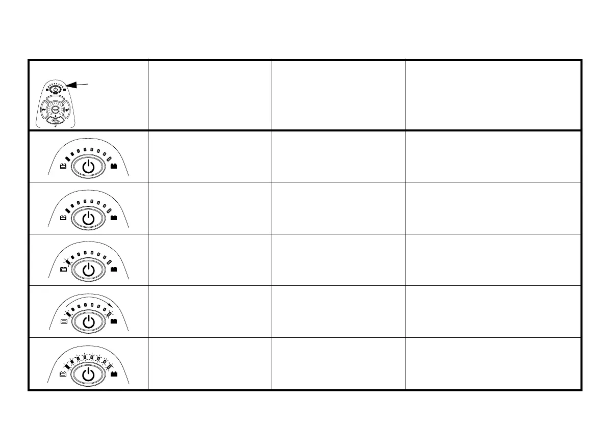 The steady LEDs indicate the current state of