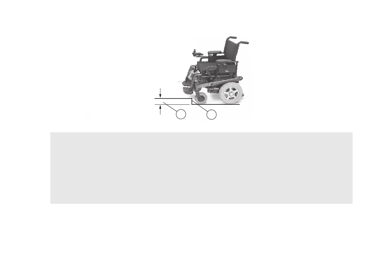 Serious injury or damage to the wheelchair may result from driving forward up over curbs/obstacles (C) greater than
