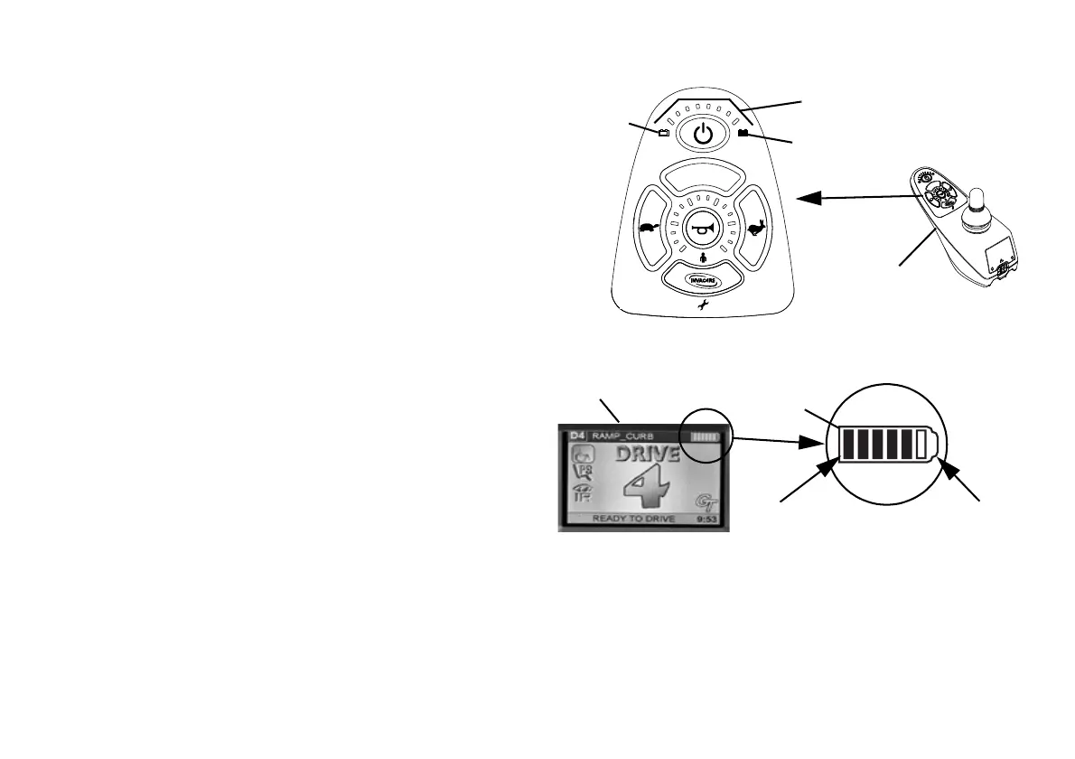 At full charge, solid blocks fill in battery gauge. As the battery becomes