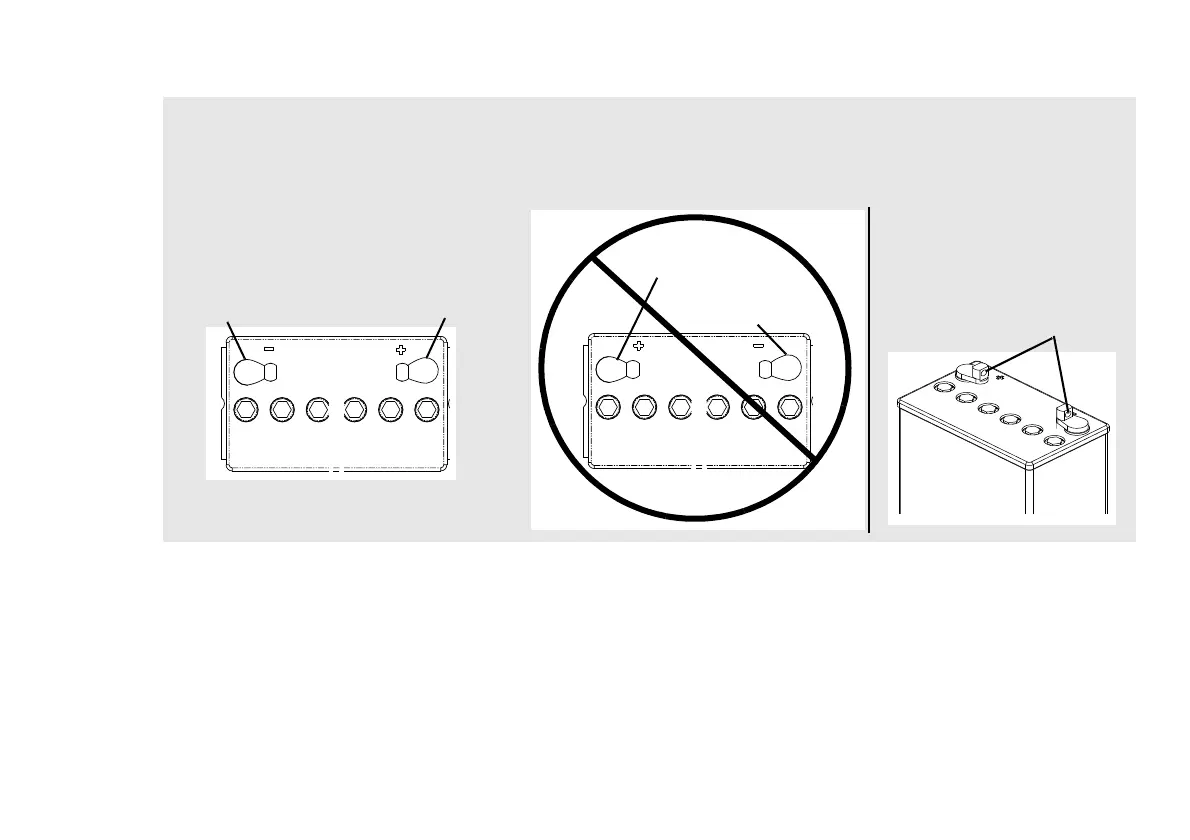 Batteries that have the reverse terminal configuration MUST not be used - otherwise injury and damage may occur.