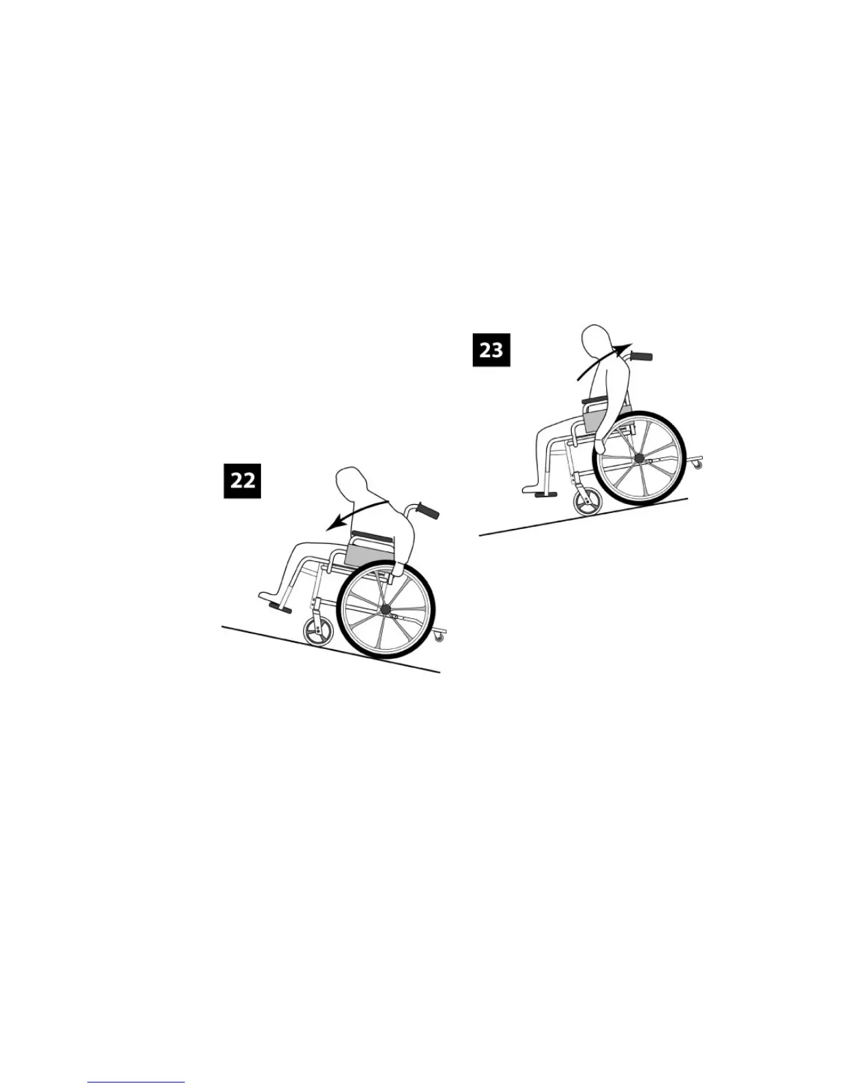 Lean backwards carefully and allow the handrims to