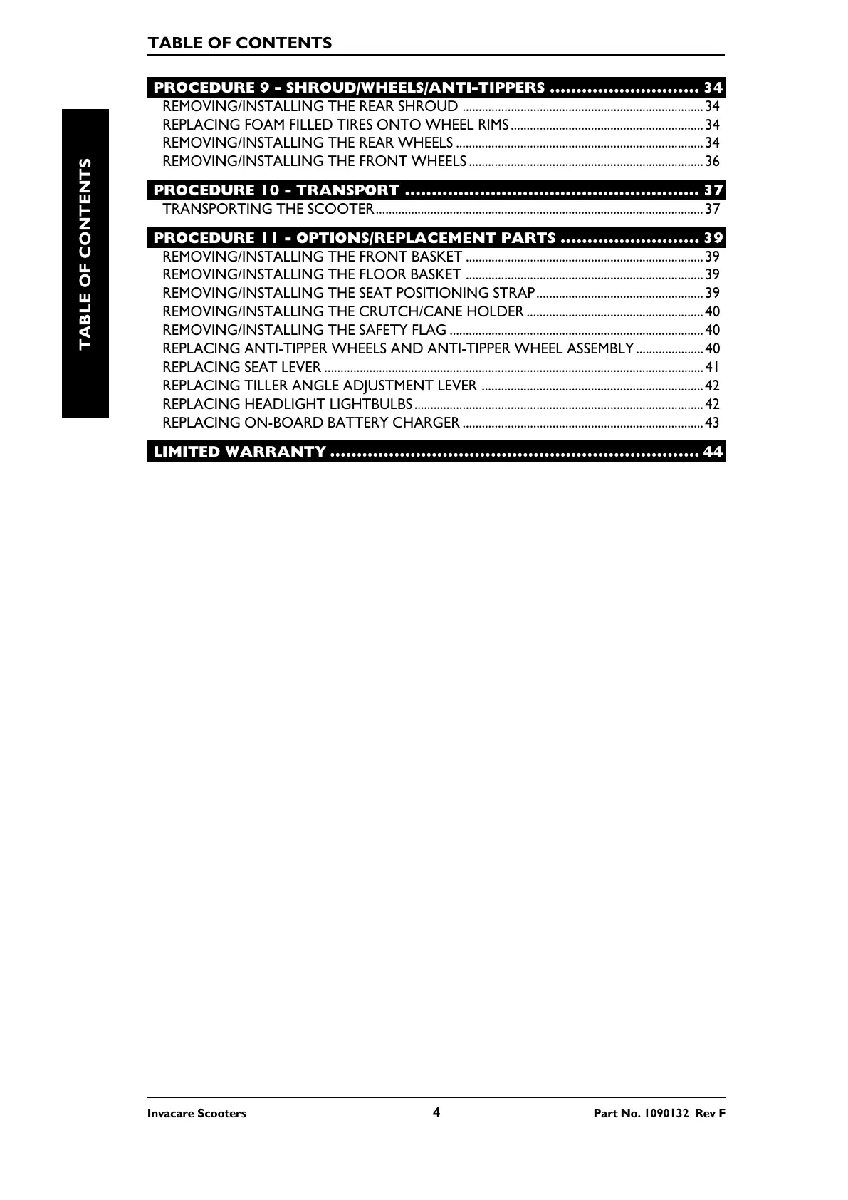 Invacare Scooters 4 Part No. 1090132 Rev F