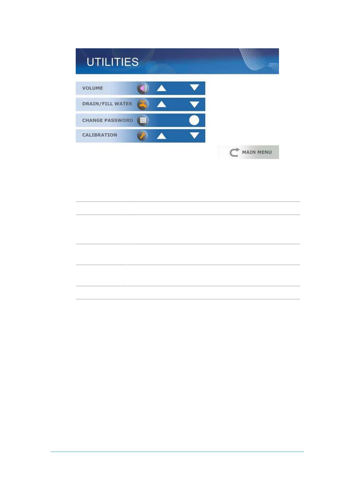 The Utility Screen contains: