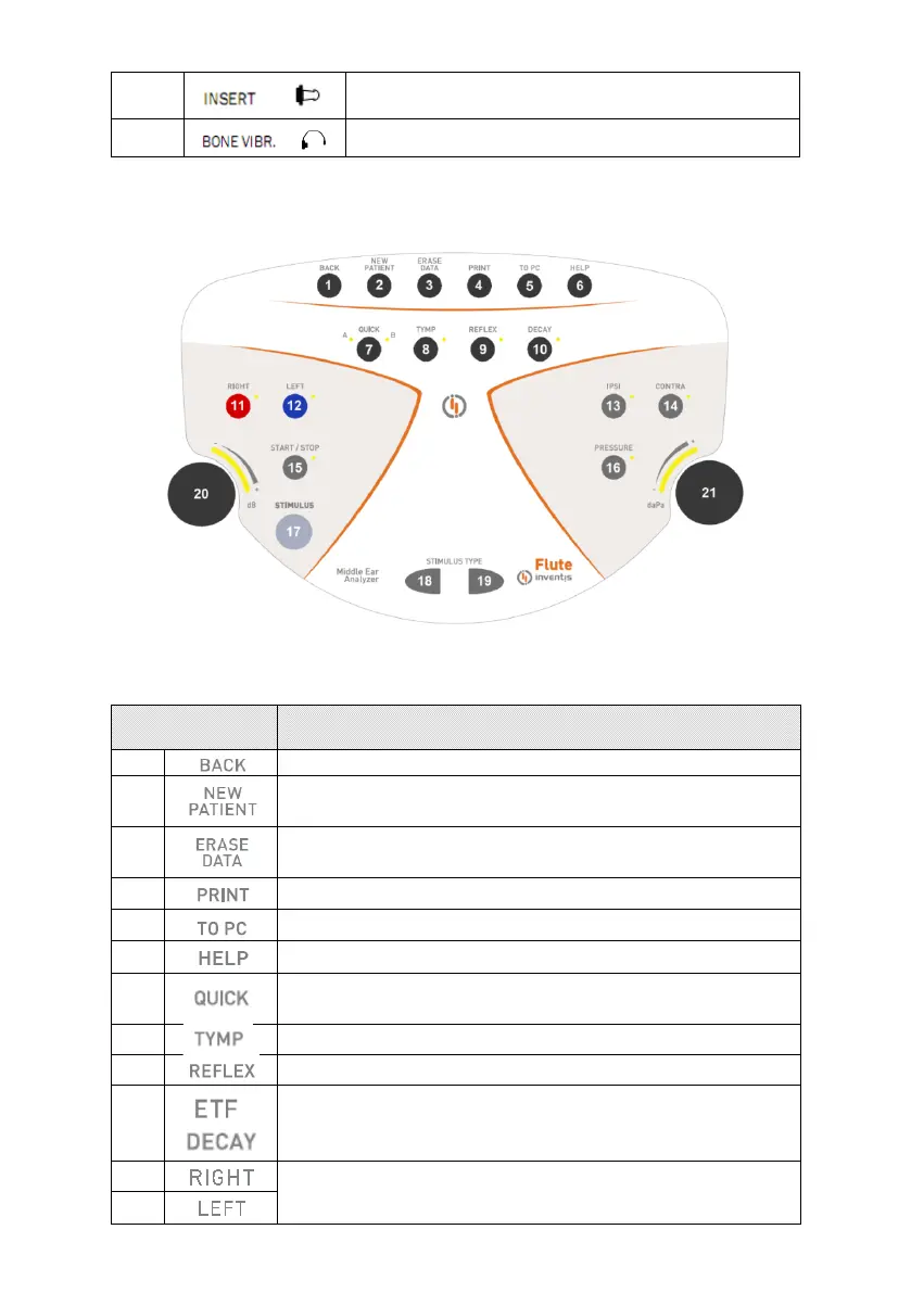TASTENFELD DES IMPEDANZMESSGERÄTS FLUTE