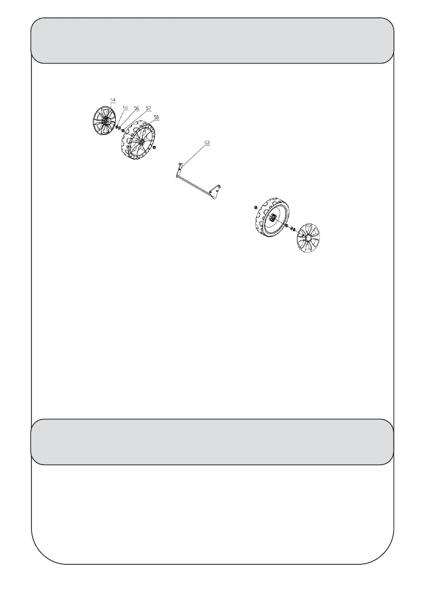 plastique (57) puis la rondelle (56). Pour solidariser la roue à son axe,