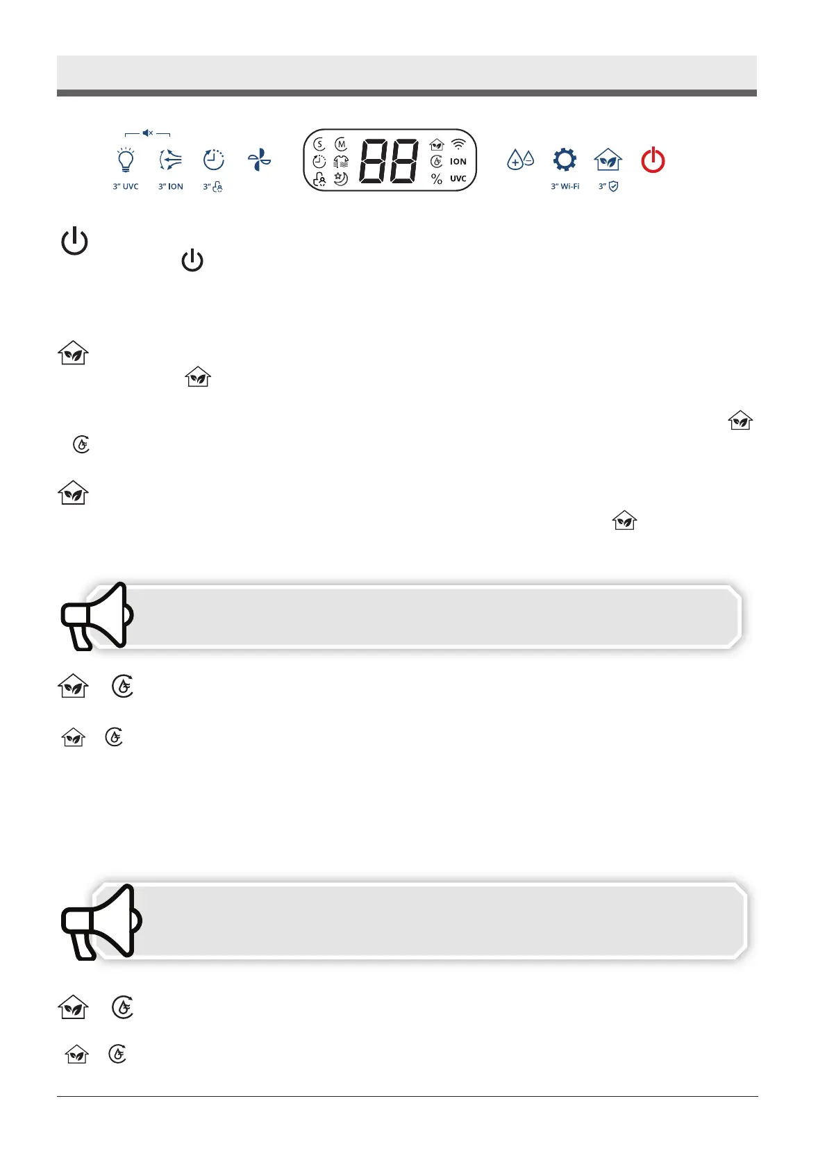 By pressing the " " button the dehumidier/air purier turns ON or OFF. Once powered, the