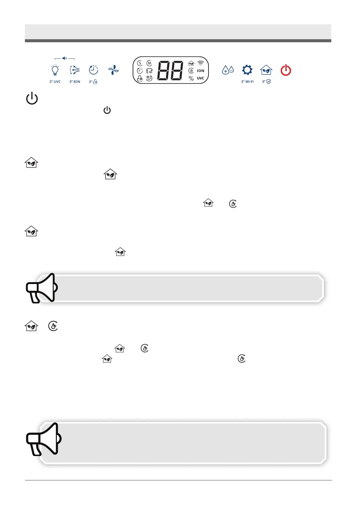 Πατώντας το πλήκτρο " " ο αφυγραντήρας και καθαριστής αέρα ενεργοποιείται ή