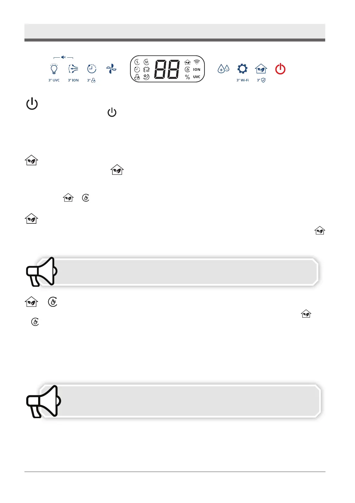 + vor aparea pe asajul digital. Indicatorul de puricare a aerului va clipi lent, in timp