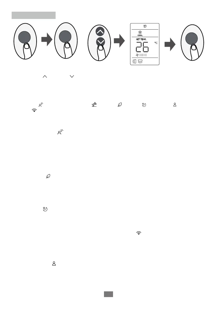 ) → Active clean/Self clean ( ) → Fresh* ( ) → Sleep ( ) → Follow Me ( ) →