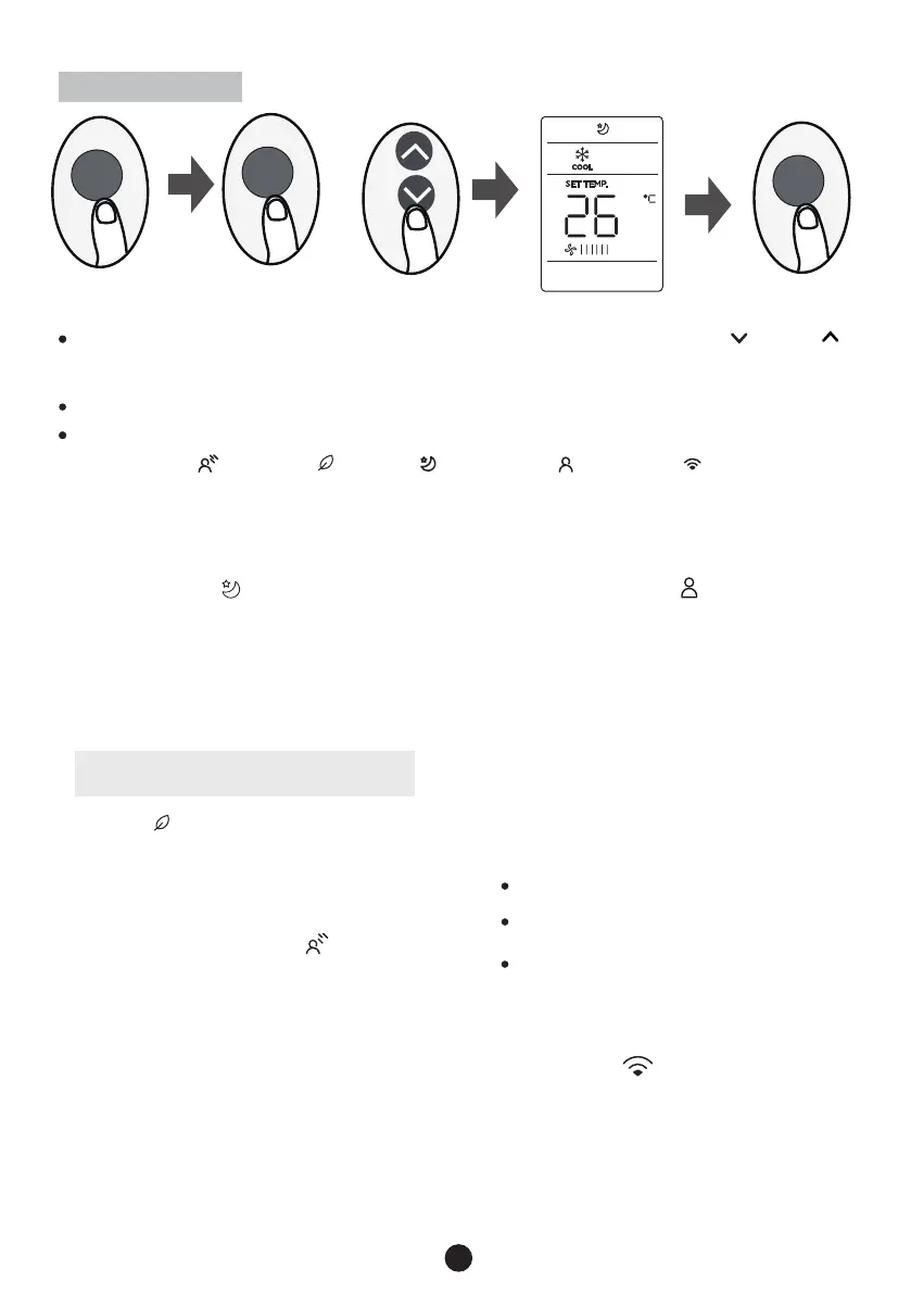 and heating capacity. Pressing ON/OFF, Mode, Sleep, Turbo or Clean button while