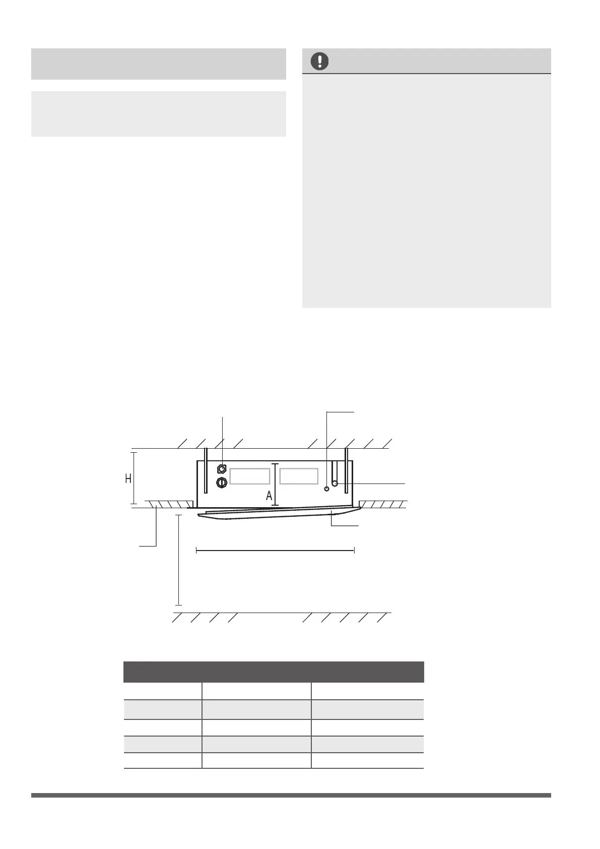 Distanta dintre unitatea interna si tavan trebuie sa indeplineasca urmatoarele conditii (Fig 4.2)
