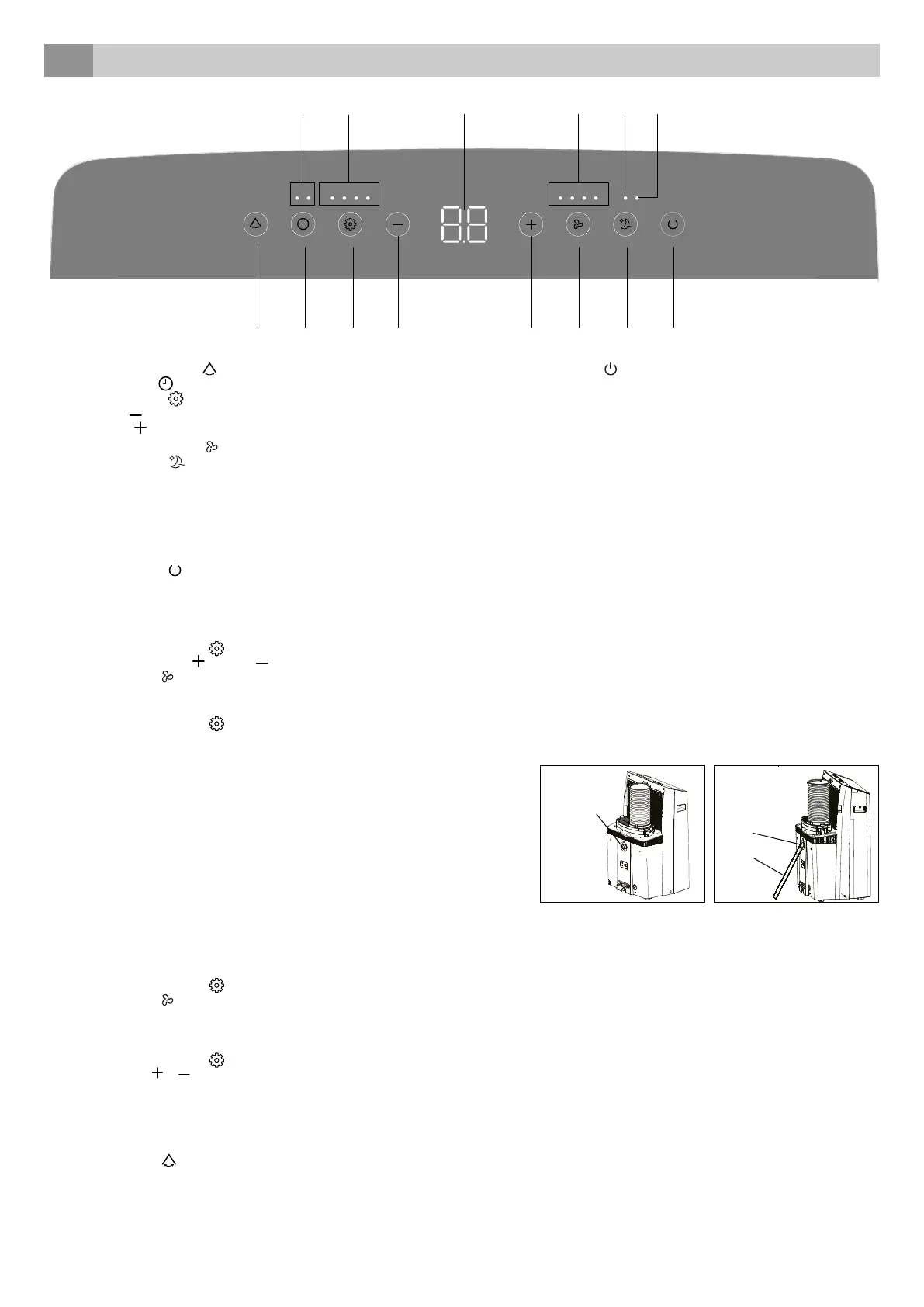 13. Indicatie lampjes - auto / koelen / ontvochtigen / luchtcirculatie
