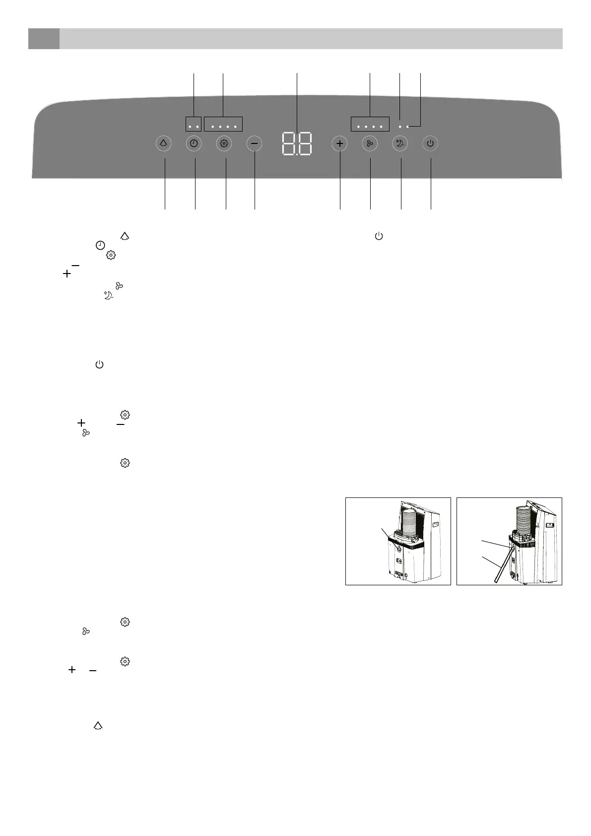 11. Indicator light - ventilation speed: auto / low / medium / high