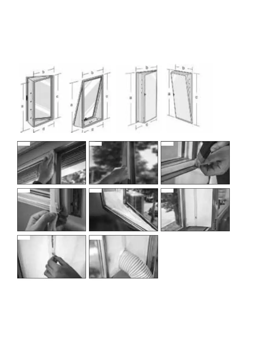 • Attach the supplied double-sided tape on the window frame and the window in accordance with one of the drawings