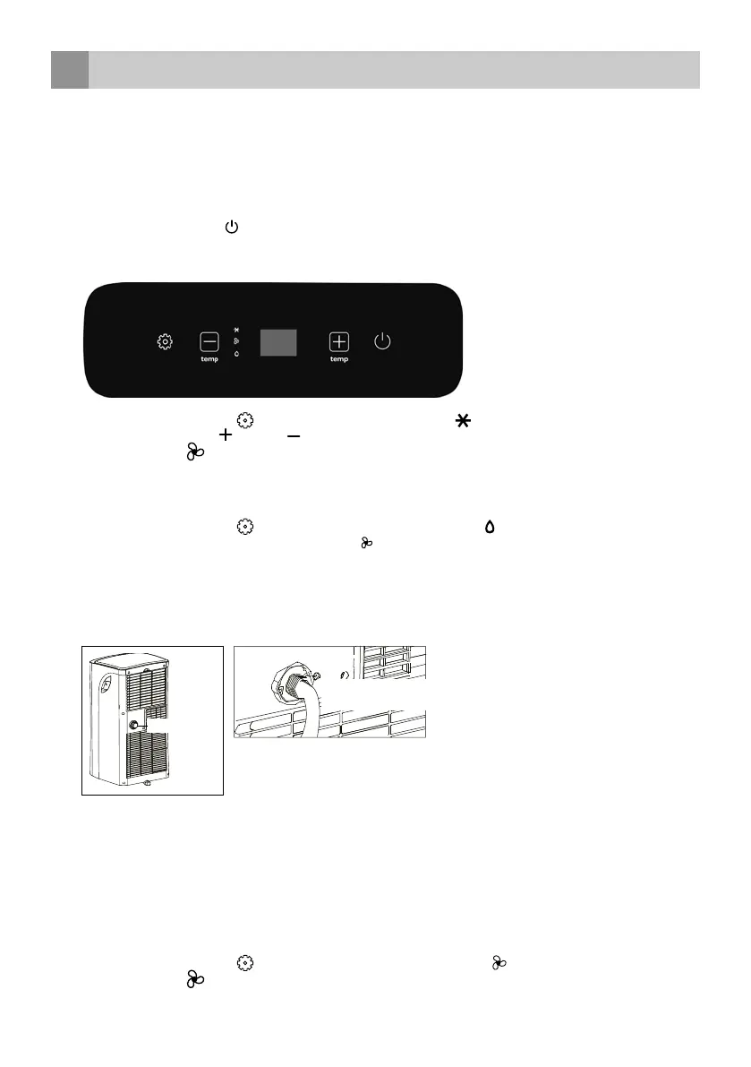 • Drücken Sie die Funktionstaste [ ], bis die Anzeigelampe für das Entfeuchten auf dem Display aufleuchtet.