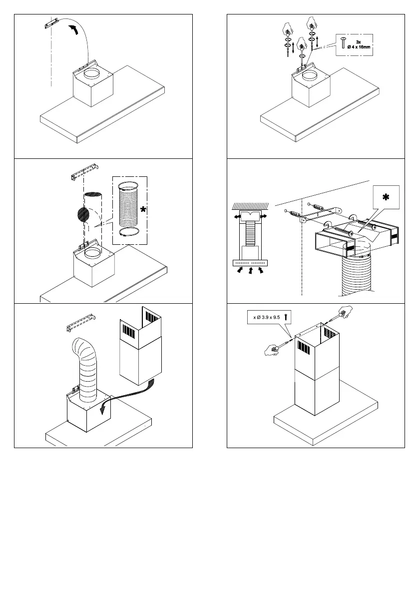 3 Insert the plugs and fit the cooker hood bracket with the screws to the wall.