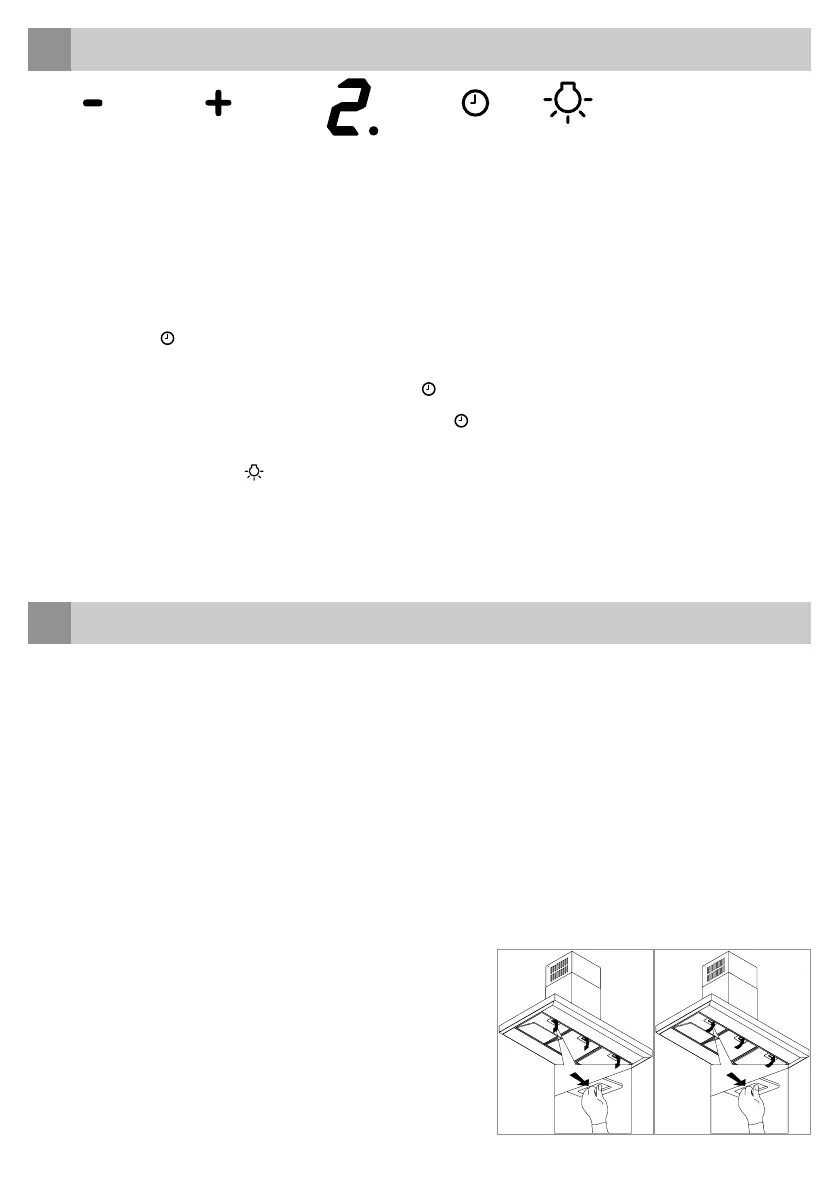 4 TIMER - door het instellen van de automatische uitschakeltimer zal de afzuigkap automatisch uitschakelen na de ingestelde tijd.