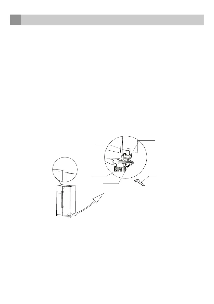 Wenn die Türen des Geräts nicht richtig mit der Geräteoberseite ausgerichtet sind, kann die Höhe angepasst werden. Folgen Sie,
