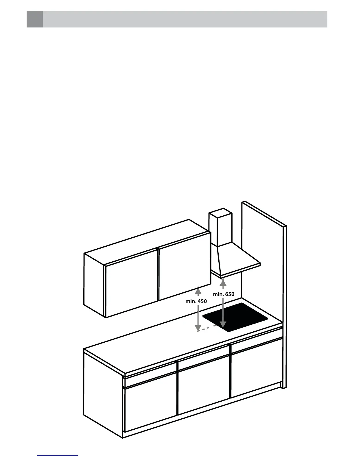 een minimale afstand voor de ventilatie. Onder de kookplaat mogen geen koelkasten, ovens zonder ventilatie of wasmachines