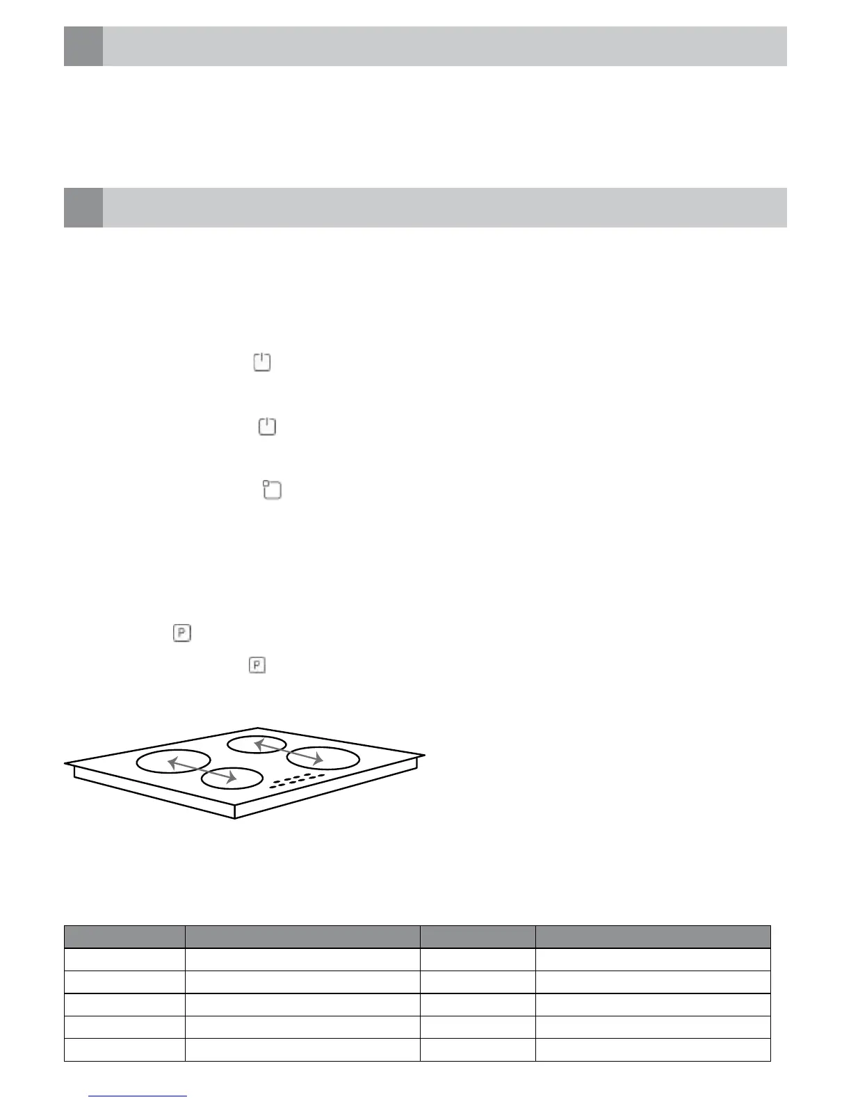 there is no cooking zone selected within 20 seconds, the hob will automatically shut off.