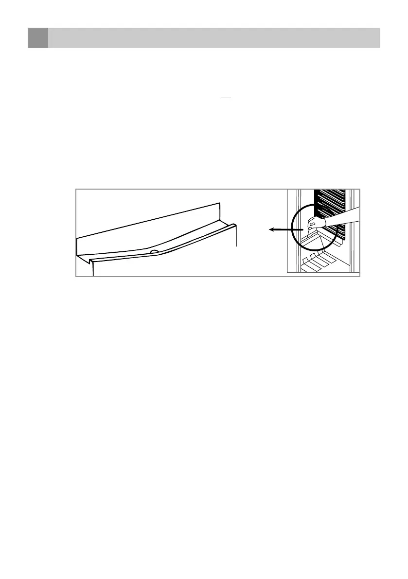 • The space between the shelves and the rear wall of the larder compartment must be unobstructed to allow the cool air