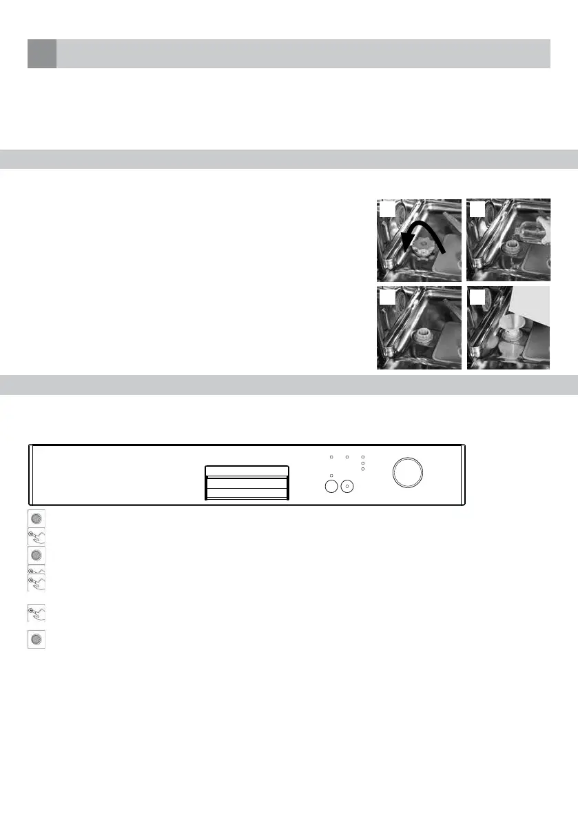 • Remove the lower basket and unscrew the cap of the salt reservoir (1 and 2).