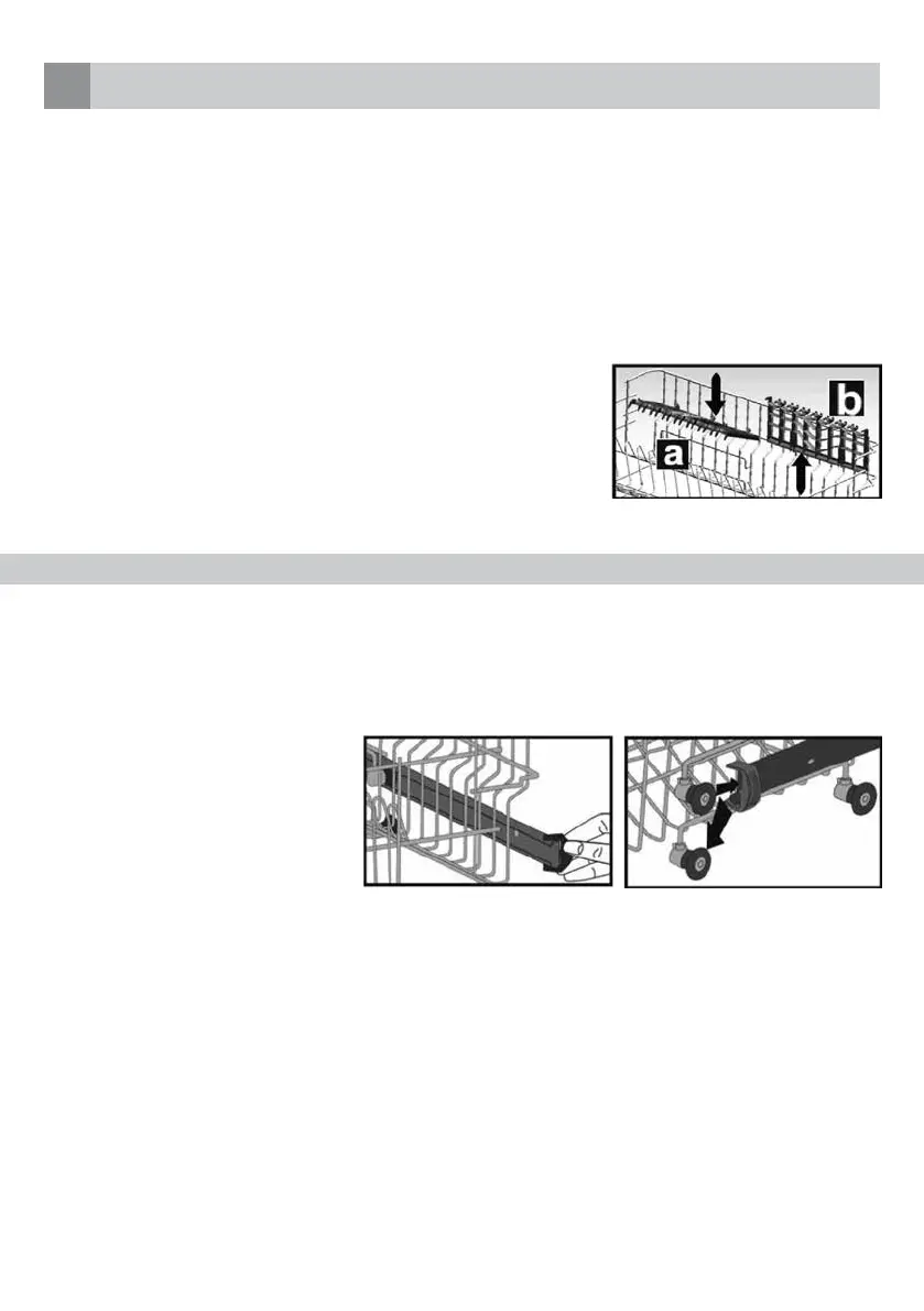 the lower basket. When the upper basket is in the lower position, you can place large plates in the upper basket.Adjust the height