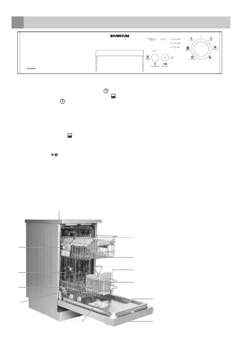tijd. Zodra de ingestelde tijd voorbij is, gaat het bijbehorende indicatielampje uit en zal de vaatwasmachine beginnen