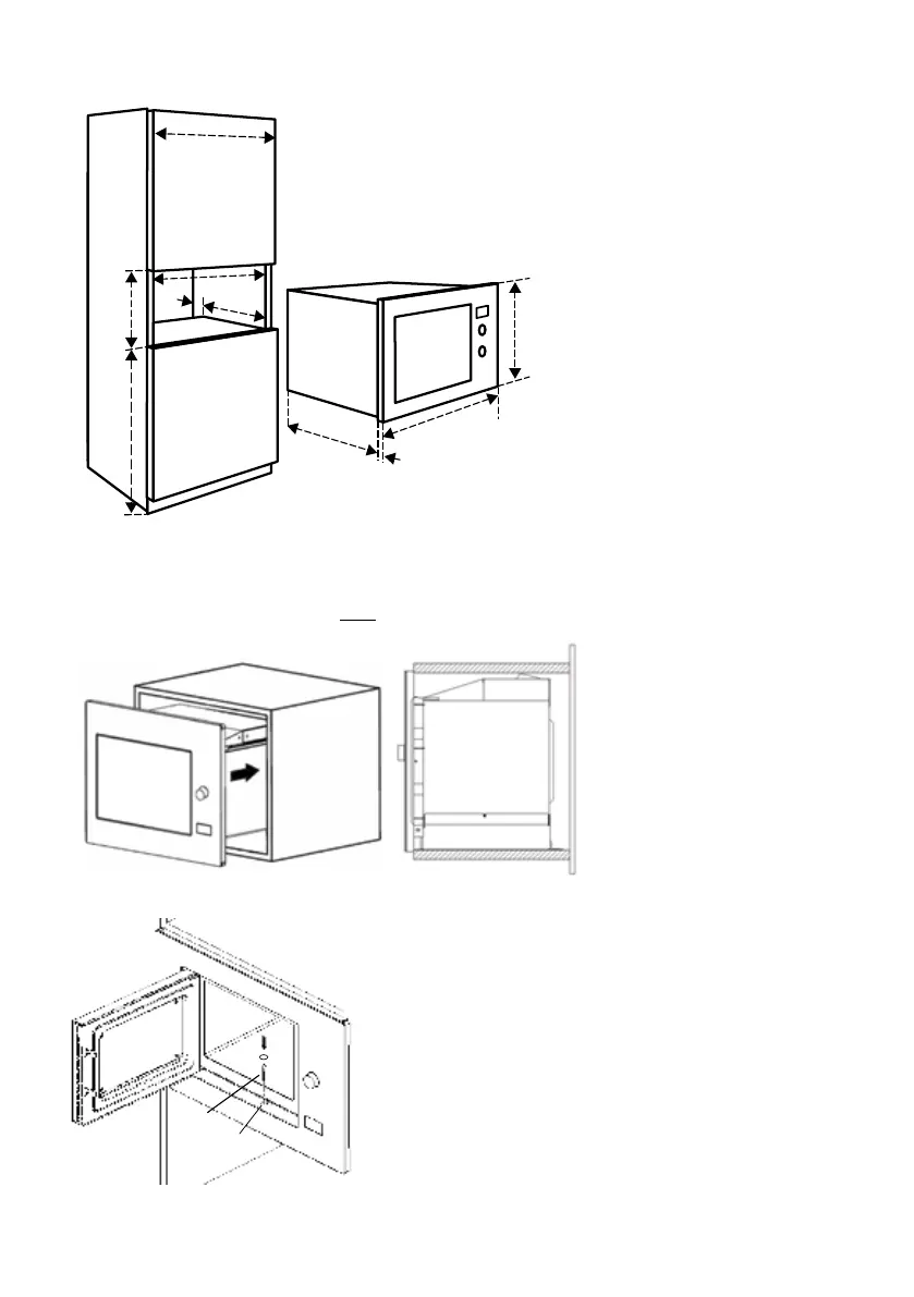 • Check that the cabinet and the space for the microwave oven meet the dimension and ventilation requirements.
