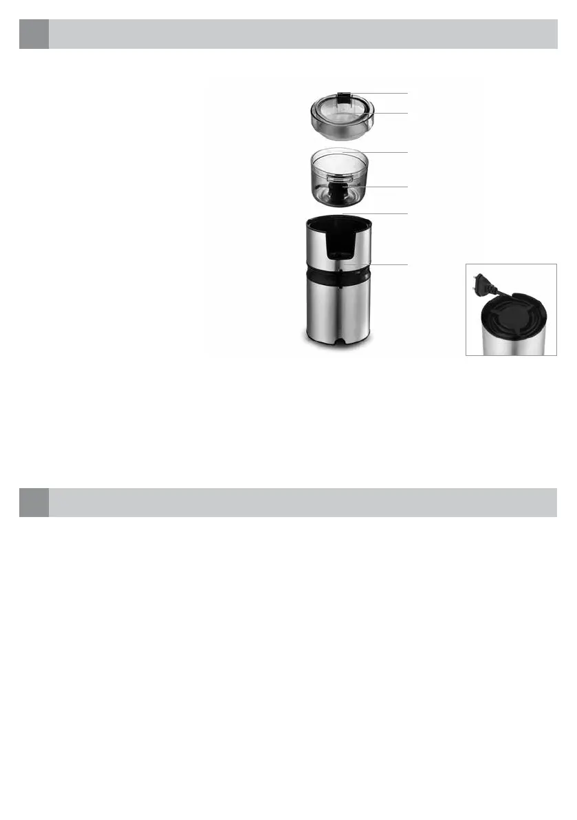 damage, possible from transportation. Place the coffee grinder on a flat and stable surface. Rinse all the accessories - container and