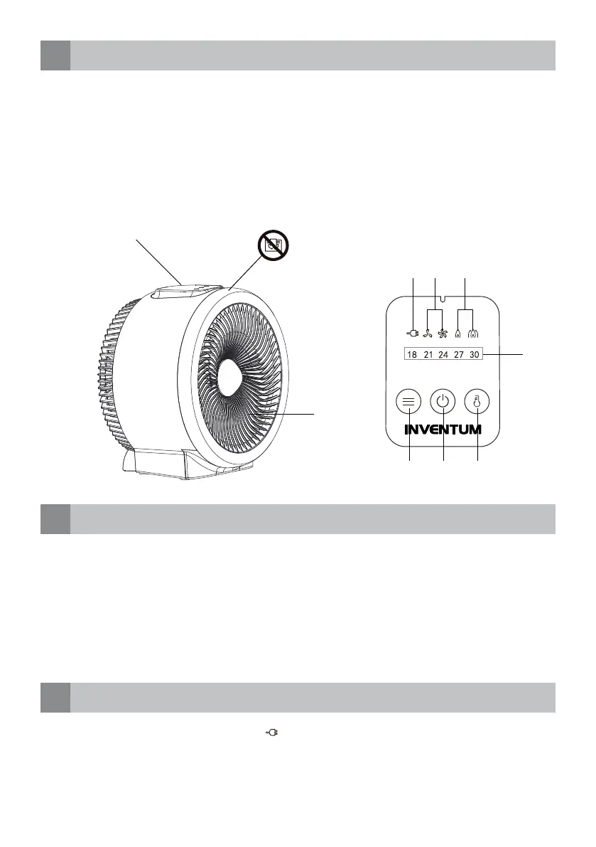 Insert the plug in a socket. The power supply indicator lights as long as the heater is connected to the power supply.