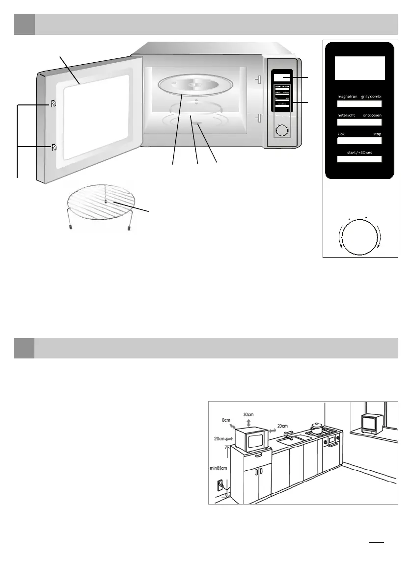 televisie en radio verstoren. Plaats de combi magnetron dus niet
