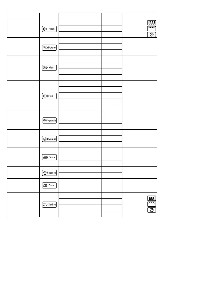 Menu Icoon Gewicht (g) Display Gebruikte stand
