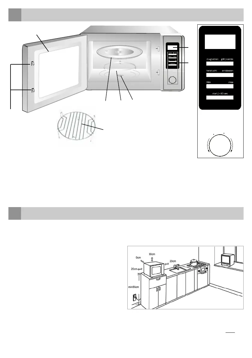 de bovenkant vrij zijn en een minimum van 20 cm tussen de combi