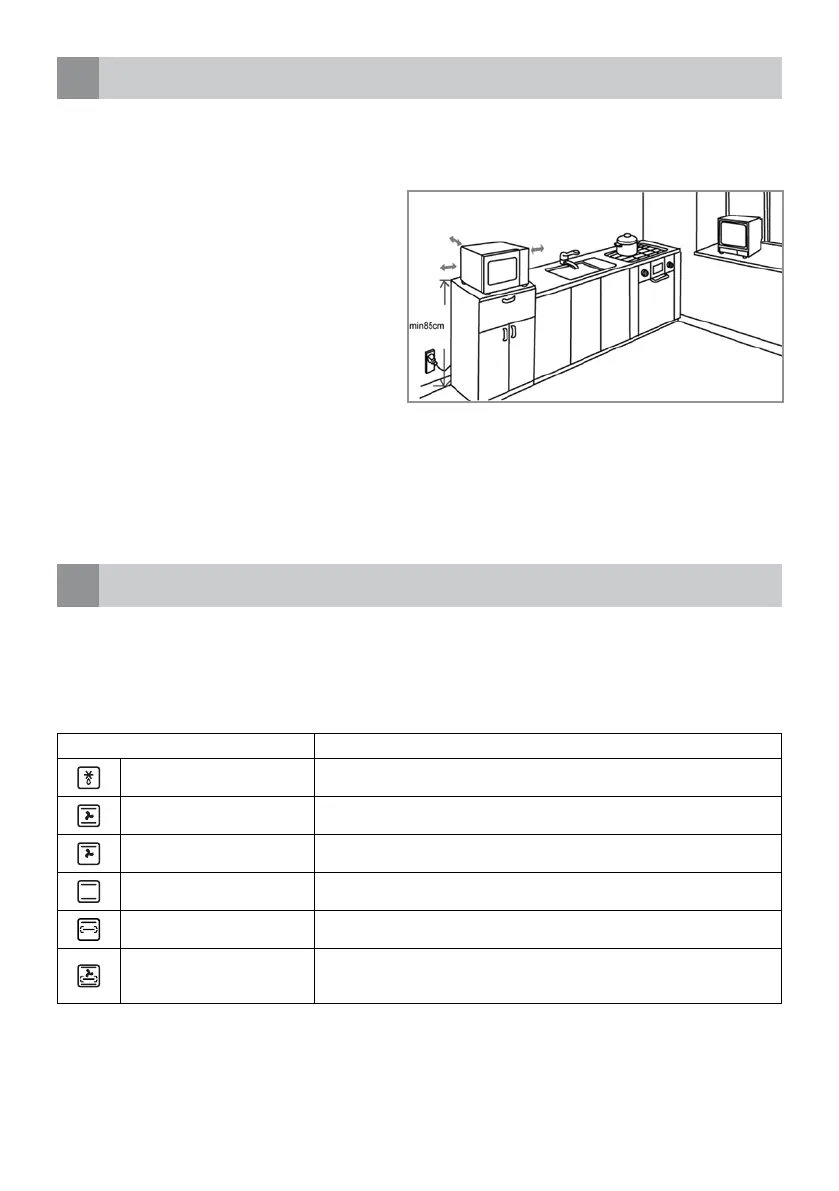 De oven beschikt over de volgende functies: