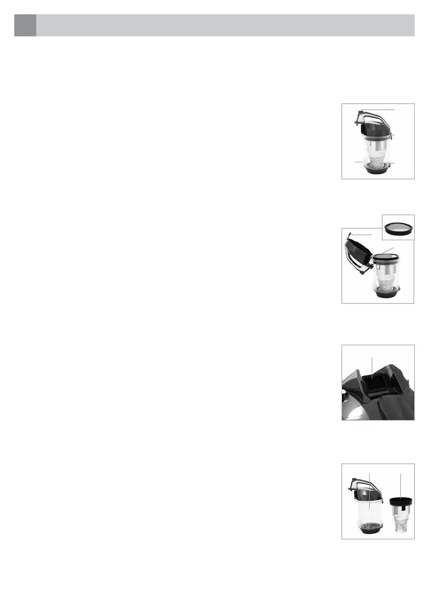 Si le système cyclonique et le réservoir à poussière sont très sales, ils peuvent être nettoyés à l’eau courante tiède.