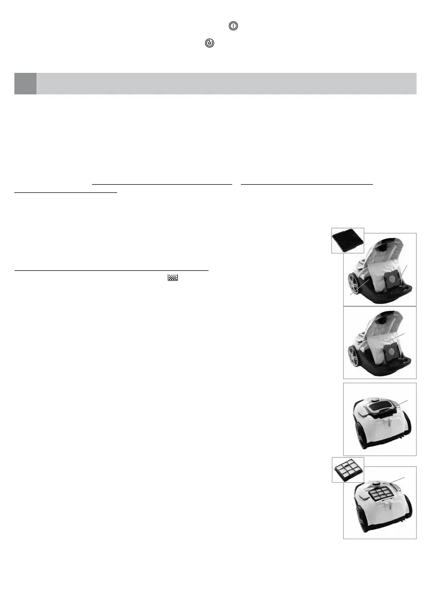 • Utiliser l’aspirateur uniquement si tous les filtres et un sac à poussière sont installés. Si ce n’est pas le