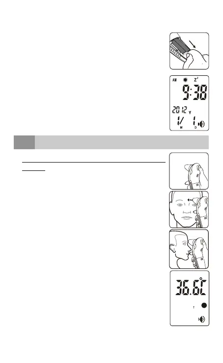 2. Plaats de thermometer zachtjes op het voorhoofd