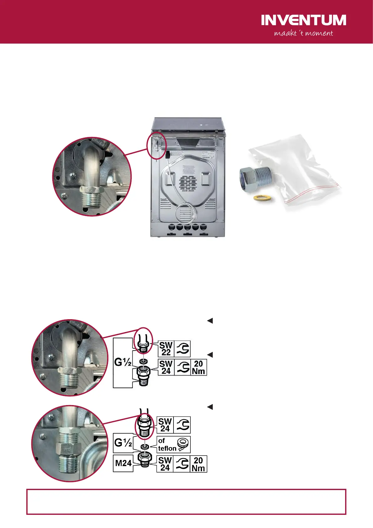 de meegeleverde afdichting + verbindingsstuk (G½” schroefdraad) te worden gemonteerd.