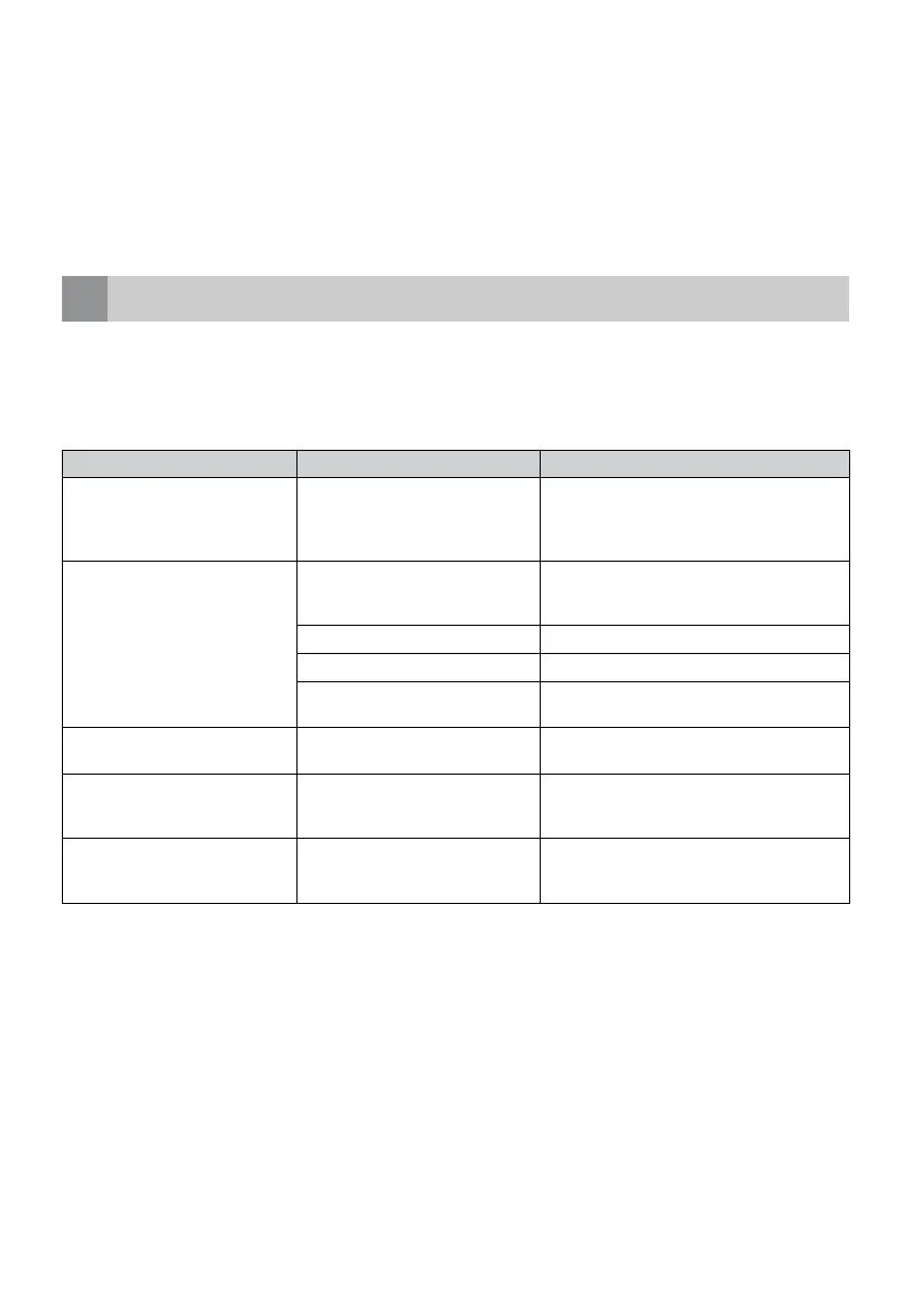 • sommige kleine problemen kan de gebruiker zelf oplossen met behulp van de aanwijzingen in de tabel hieronder.
