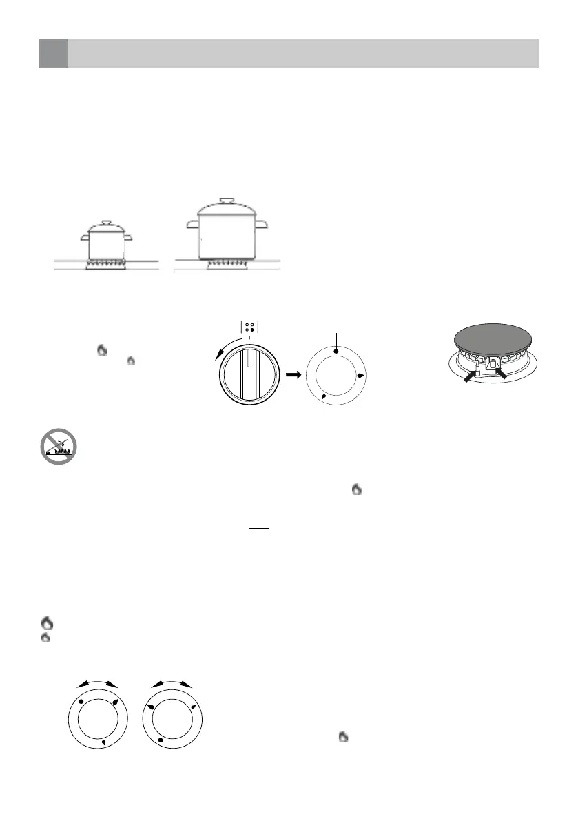 • Hold the control knob down fully for at least 3 seconds between the highest and the lowest flame. The integrated ignition