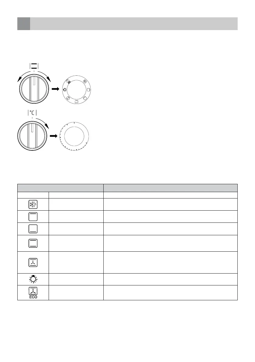 Caution! When selecting any heating function, the oven will only be switched on after the temperature has been set by the