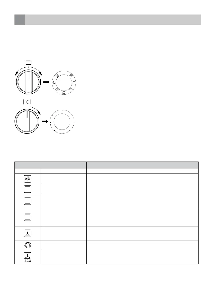 Le four peut être commandé à l’aide du bouton rotatif pour la fonction du four - tournez le bouton vers la fonction souhaitée