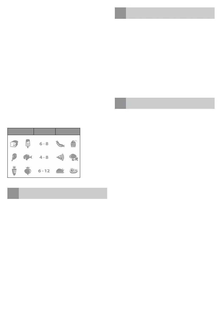 • Leave sufficient space between the food to enable air to
